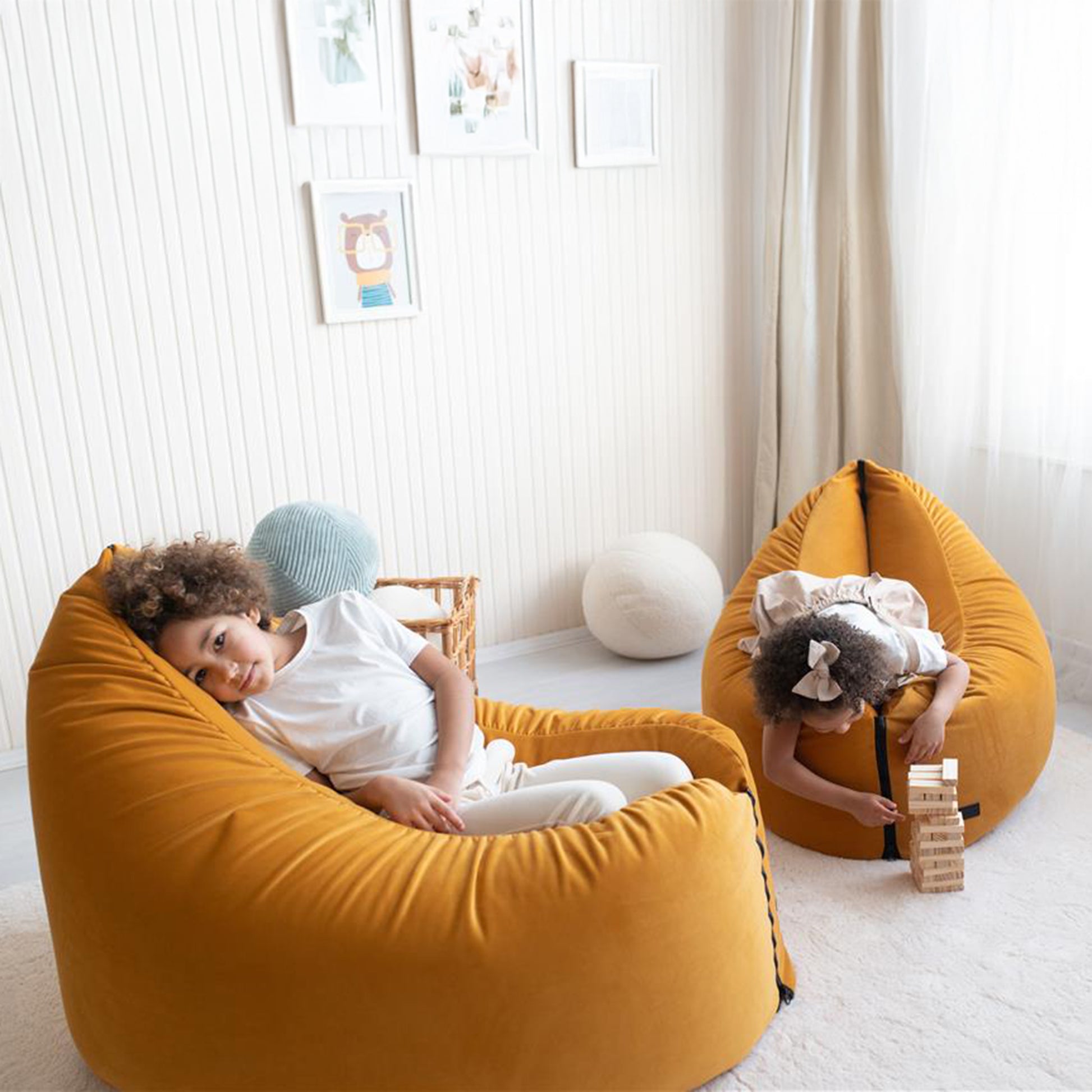 It is easy to change the shape of the bean bag with the two zippers: