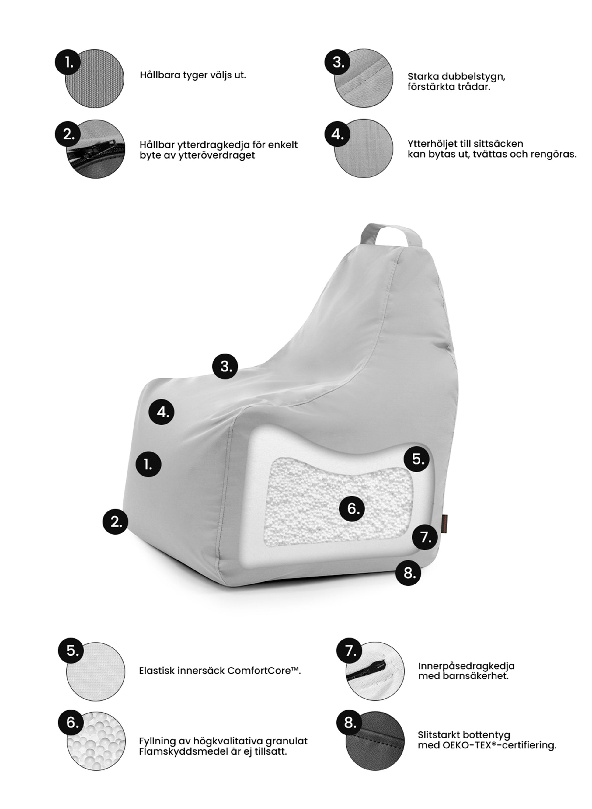 Fyllning: EPS cellpastkulor fyllning 2-4 mm (ingår)